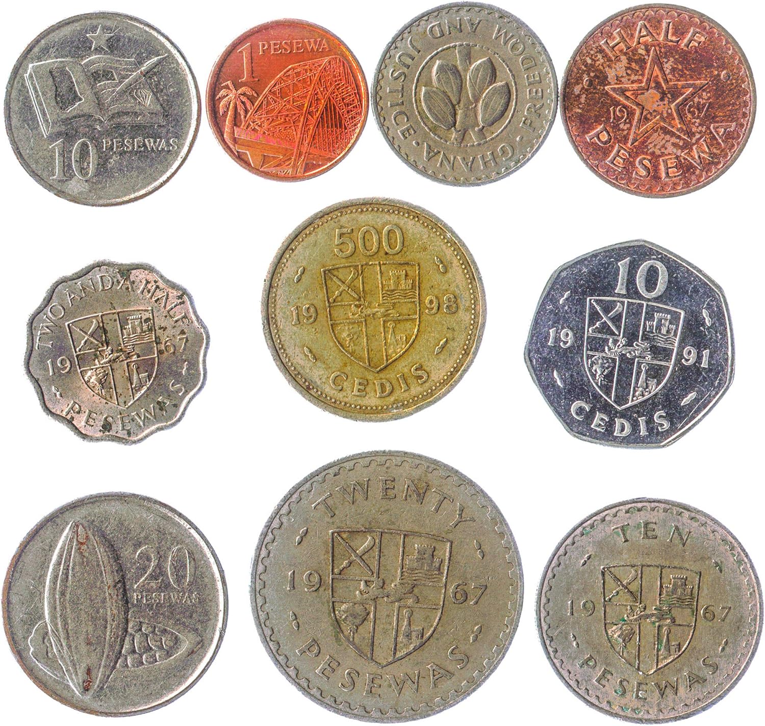 Amazon Com 10 Ghana Coins 1 Pesewa 1 Cedi Old Coins Collection From West Africa Since 1965 Perfect Choice For Your Coin Bank Coin Holders And Coin Album Collectibles Fine Art